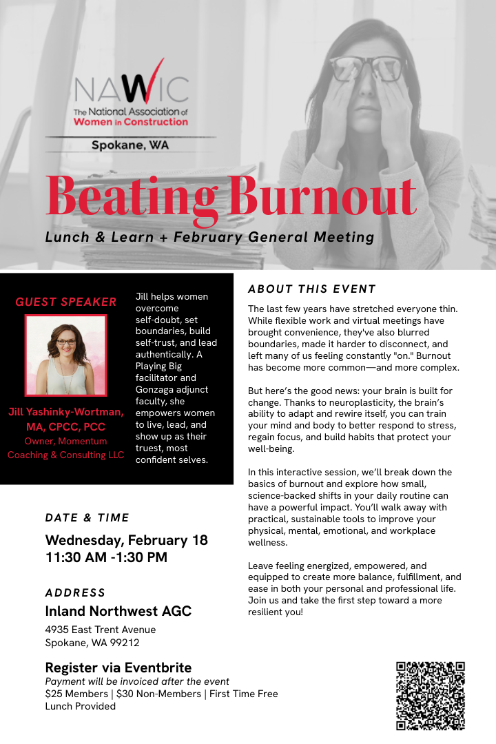 Register Via Eventbrite: https://www.eventbrite.com/e/beating-burnout-lunch-learn-february-general-meeting-tickets-1980580703199